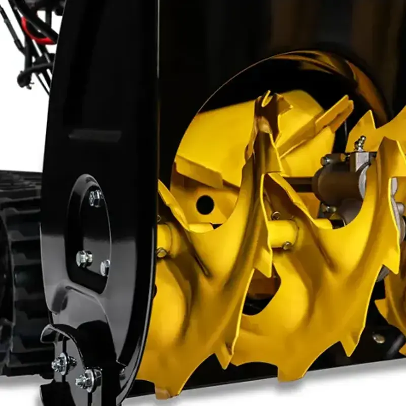 Благодаря подогреву рукояток со снегоуборщиком CHAMPION STT761E можно работать продолжительное время — руки при этом не будут мерзнуть. Яркая фара обеспечивает не только удобство работы в условиях плохой освещенности, но и безопасность во время уборки вблизи проезжей части. Закрепленная на корпусе лопатка помогает очищать шнек от засоров и наледи. Зимний двигатель легко заводится на морозе при помощи ручного стартера или запуска от электросети. Гусеничная лента с глубоким протектором отлично сцепляется с поверхностью, не скользит и не пробуксовывает на льду.