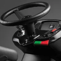 Эргономичная панель управления Для повышения уровня комфорта оператора во время работы конструкторы Caiman Comodo уделили особое внимание эргономике. На передней панели удобно размещены все органы управления: счетчик моточасов, рычаг плавного изменения скорости, кнопка включения привода деки и системы освещения. Стояночный тормоз приводится в действие простым нажатием на кнопку.