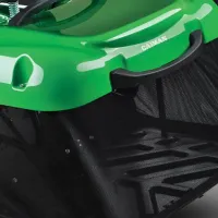 Большой травосборник 380 литров Травосборник емкостью 380 литров изготовлен из износостойкого полимера, который хорошо пропускает воздух, что увеличивает эффективность сбора травы. Он оснащен сбалансированным рычагом подъема, облегчающим выгрузку скошенной травы, снятие и установку травосборника.
