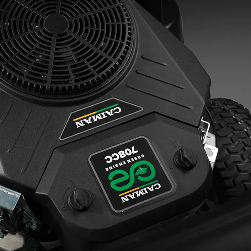 Высокопроизводительный экологичный двигатель Caiman Green Engine 708CC Конструкция из 2 цилиндров лучше сбалансирована по сравнению с одноцилиндровыми двигателями, что позволяет достигать более высоких оборотов при более низкой вибрации. Благодаря меньшему объему каждого отдельного цилиндра нагрузка на весь двигательный узел ниже, а выходная мощность выше. Ресурс такого двигателя в 1,5 раза больше одноцилиндрового. Система смазки под давлением обеспечивает уверенную работу машины на склонах. Чугунная гильза цилиндра с улучшенными противоизносными характеристиками и двухступенчатая система фильтрации воздуха обеспечивают длительный срок службы. Технологии наплавки из сплава кобальта используется при изготовлении впускных и выпускных клапанов для повышенной износостойкости. Мотор сертифицирован для использования в странах Европы и Японии и соответствует директиве №2016/1628 по уровню выброса вредных веществ.