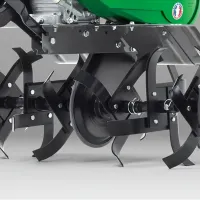 • Транспортировочное колесо. Позволит легко переместить доставить культиватор до места работы. Колесо имеет специальную пружину для легкого перевода в рабочее положение и обратно.