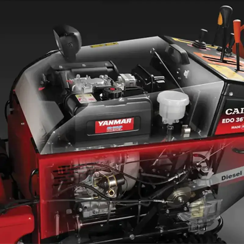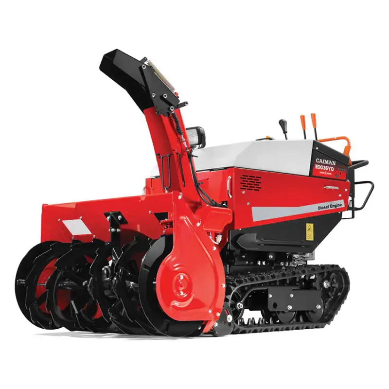 Японская профессиональная гусеничная снегоуборочная машина Caiman Edo 36YD(9) оснащается гидростатической трансмиссией, дизельным двигателем Yanmar, электрогидравлической системой регулировки наклона, подъема и опускания шнека, чугунным редуктором. Снегоуборщик обладает высокой производительностью и способен убирать любой снег: плотный, мокрый, обледеневший. Производительность машины составляет 60 тонн в час.