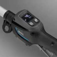 Дисплей показывает остаточную емкость аккумулятора, общее время работы, передачу (1, 2 или 3), уведомления об обслуживании и ошибках. Под дисплеем расположен выключатель питания и переключатель передач