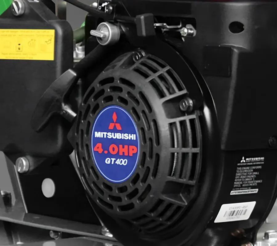Четырехтактный бензиновый двигатель Mitsubishi GT400 (Япония) Мотор характеризуется легким запуском, небольшим расходом топлива, невысоким уровнем шума и вибрации благодаря применению передовых технологий и высококачественных материалов. Верхнее расположение клапанов, чугунная гильза цилиндра обеспечивают длительный срок службы.