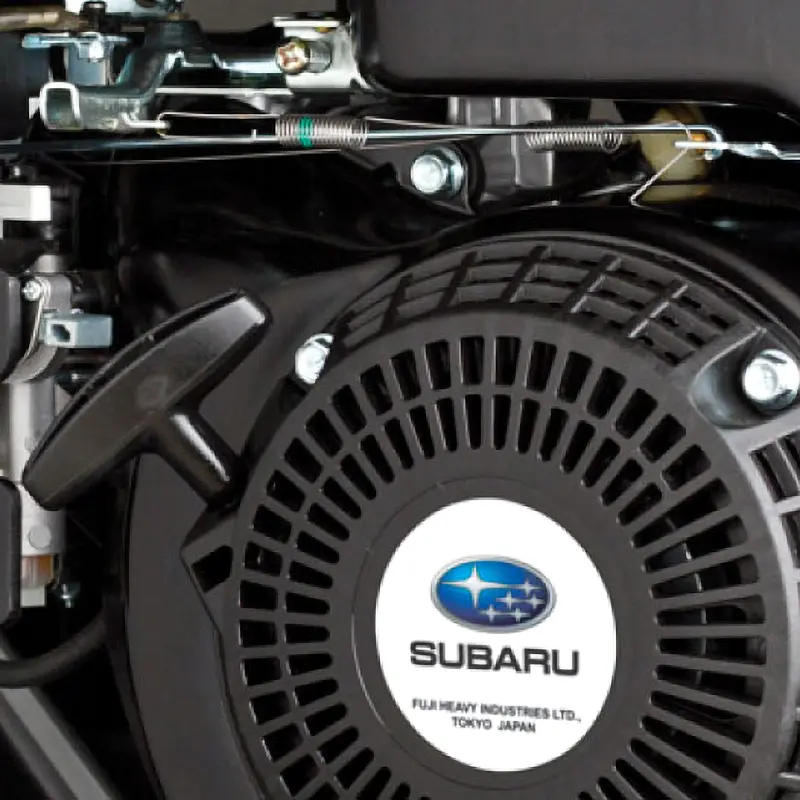 Перевозить технику по участку легко благодаря переднему транспортировочному колесу. Во время работы его можно поднять наверх с помощью специальной пружины.