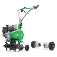 В комплекте: 3 пары культиваторных фрез рабочей шириной 20-30-46 см (ширина регулируется при помощи установки или снятия пар фрез). Насадка «щелеватель газона» удалит слой сухой травы и мха для беспрепятственного доступа воды, воздуха к корням, отвода лишней влаги, роста новой травы. Такая процедура позволит придать газону ухоженный вид.