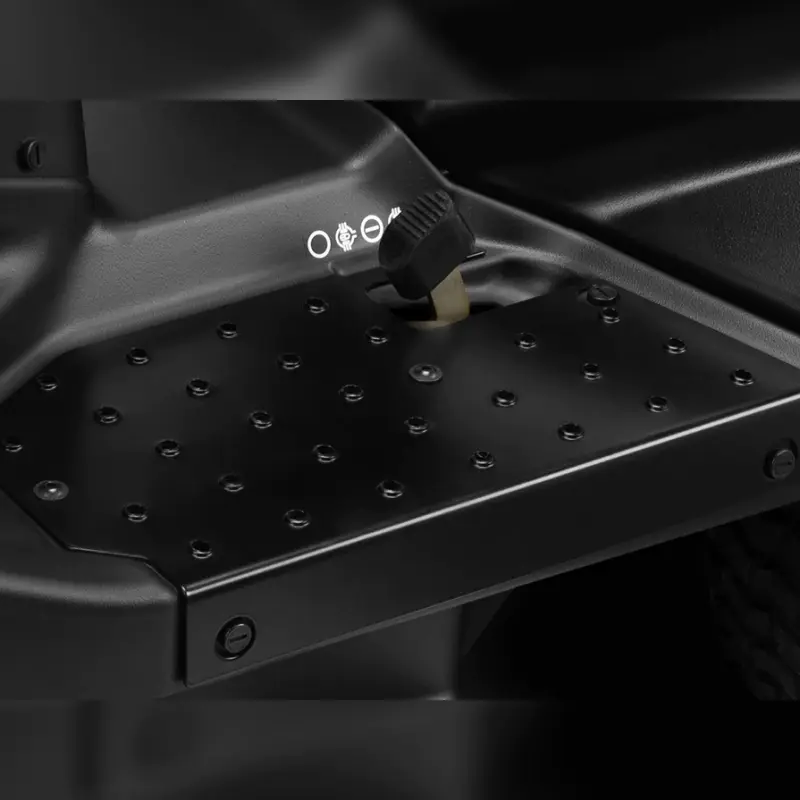 Металлические подножки и бампер MAX Металлические подножки и бампер выполнены из листового металла толщиной 3 мм. Подножки имеют противоскользящее покрытие для повышения устойчивости при работе в сложных условиях. Передний бампер, имеющий широкий профиль, состоит из трех отдельных сегментов, что увеличивает срок его службы.
