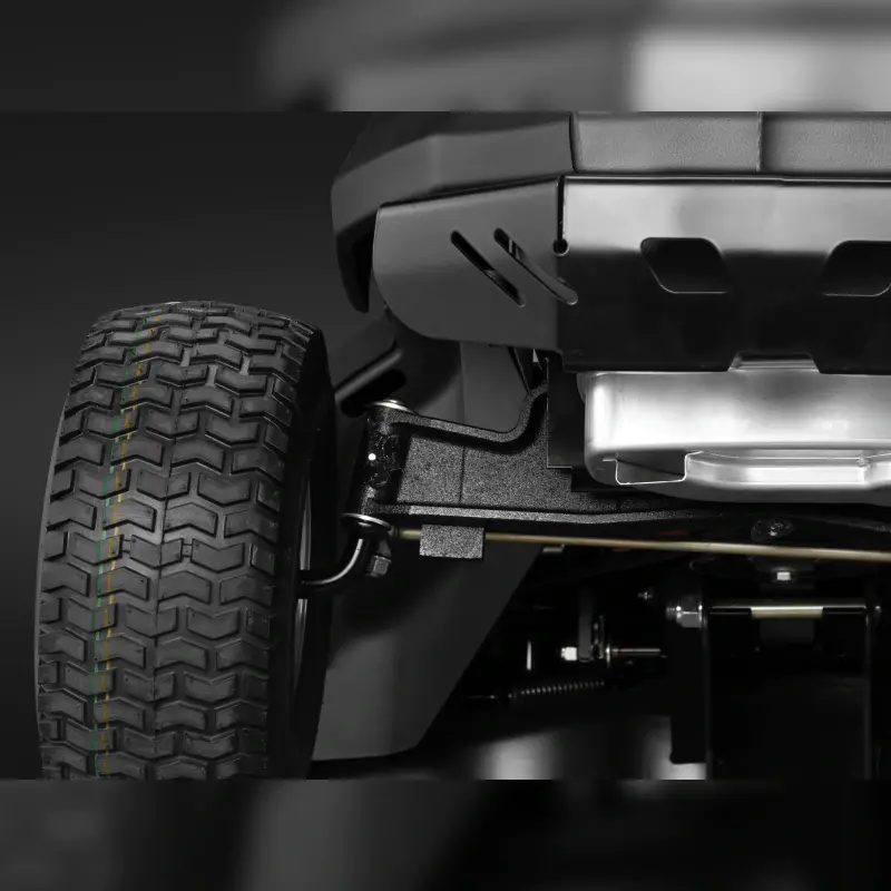 Инновационная режущая дека S-образные ножи режущей деки создают мощный воздушный поток, который перед скашиванием приподнимает траву вверх. Это улучшает подачу травы в травосборник, обеспечивает лучшую заполняемость, дает возможность сбора не только скошенной травы, но и опавших листьев. Конструкция обеспечивает высокое качество стрижки, эффективную работу в режиме мульчирования, исключает образование участков нескошенной травы даже при маневрировании машины. Ножи защищены от повреждений специальными срезными шплинтами.