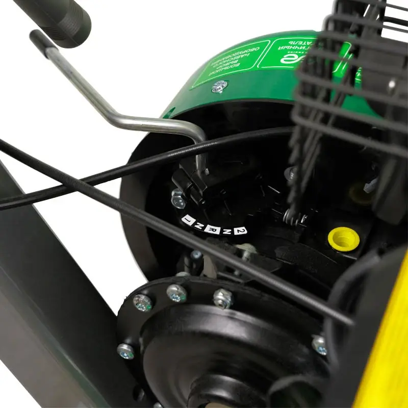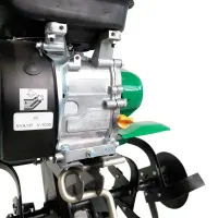 Передние передачи: пониженная 60-80 об/мин (для плуга, окучника и др.), повышенная 140-160 об/мин (для работы с фрезами), позволяют более эффективно обрабатывать участки со сложным рельефом и на влажной почве. Задняя передача – безопасный реверс с самой комфортной скоростью, всего 0,7 м/с.