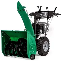 Бензиновая снегоуборочная машина подходит для расчистки парков, стадионов, парковочных мест, а также загородных участков и подъездных путей к ним от сугробов. Регулируя угол поворота желоба от 0 до 200°, можно выбирать практически любое направление для выброса снега. Если на вашем участке много объектов, выручит разблокировка дифференциала. Эта функция позволяет совершать разворот машины на месте нажатием на курок.