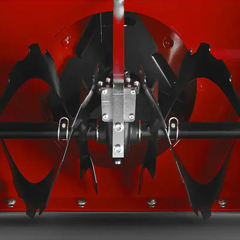 Ленточный шнек из легированной стали смешивает захваченную снежную массу с воздухом. Лопасти крыльчатки усилены металлическими пластинами для дальнего выброса. Все это обеспечивает выброс снега на расстояние до 20 м.