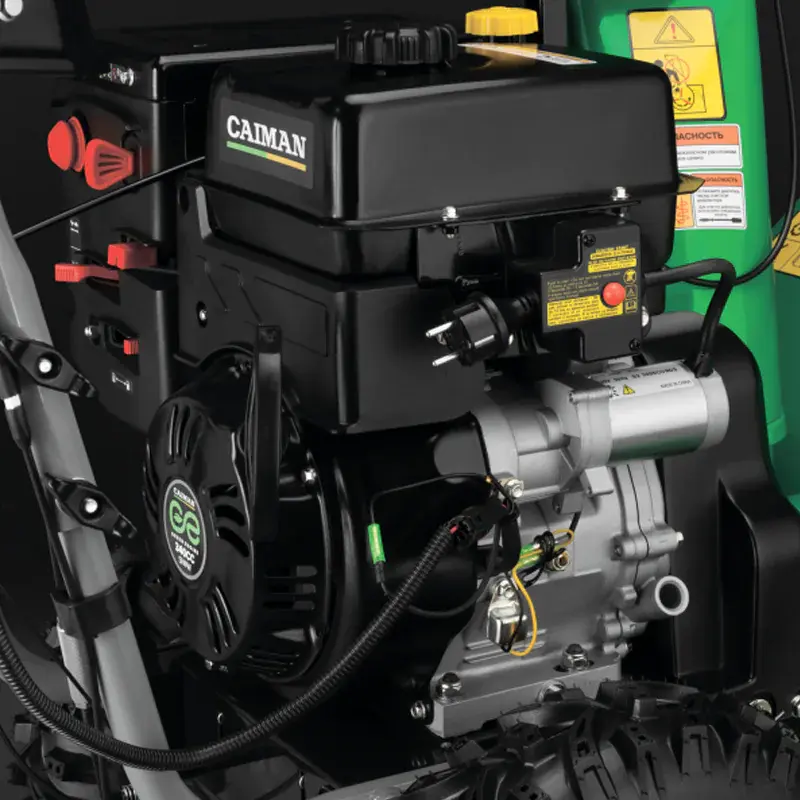 Бензиновая снегоуборочная машина оборудована долговечным мотором Сaiman Green Engine 340СС Snow. Для максимальной прочности гильза цилиндра и кованый коленвал выполнены из чугуна. Двигатель соответствует европейским стандартам по количеству выброса вредных веществ, что делает его экологичным.
