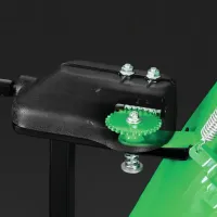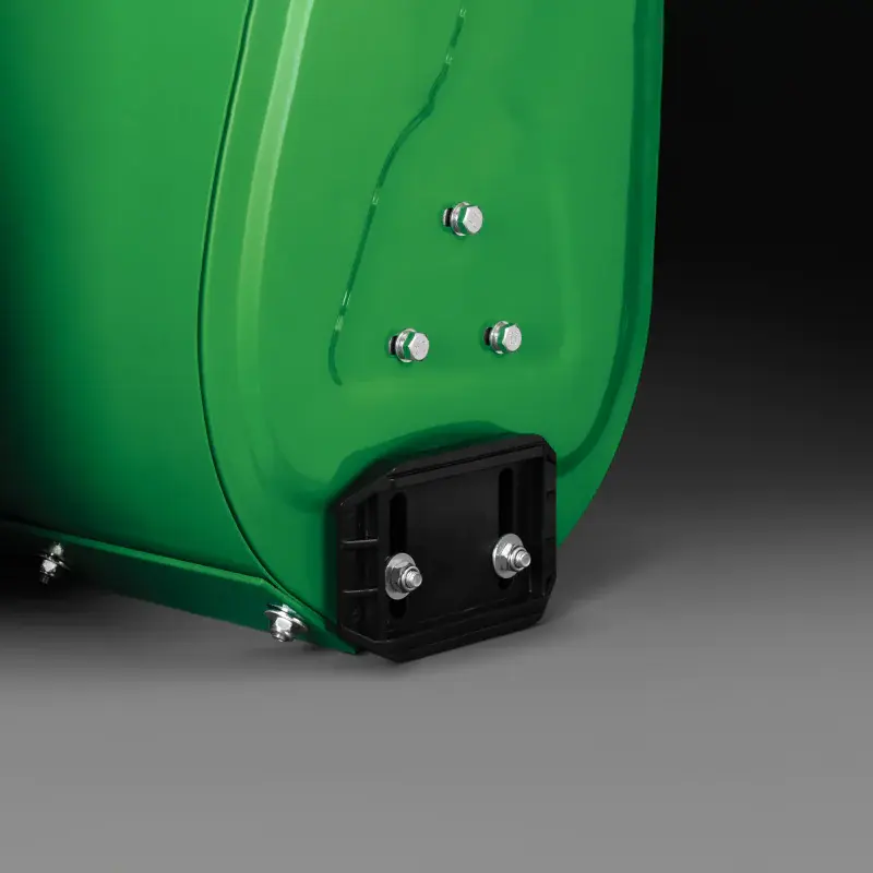 Высота шнека настраивается с помощью изменения положения боковых полозьев, которые расположены на ковше. Они позволяют приподнять его, чтобы ковш не царапал декоративную дорожку под снегом, или опустить для глубокого захвата сугробов.
