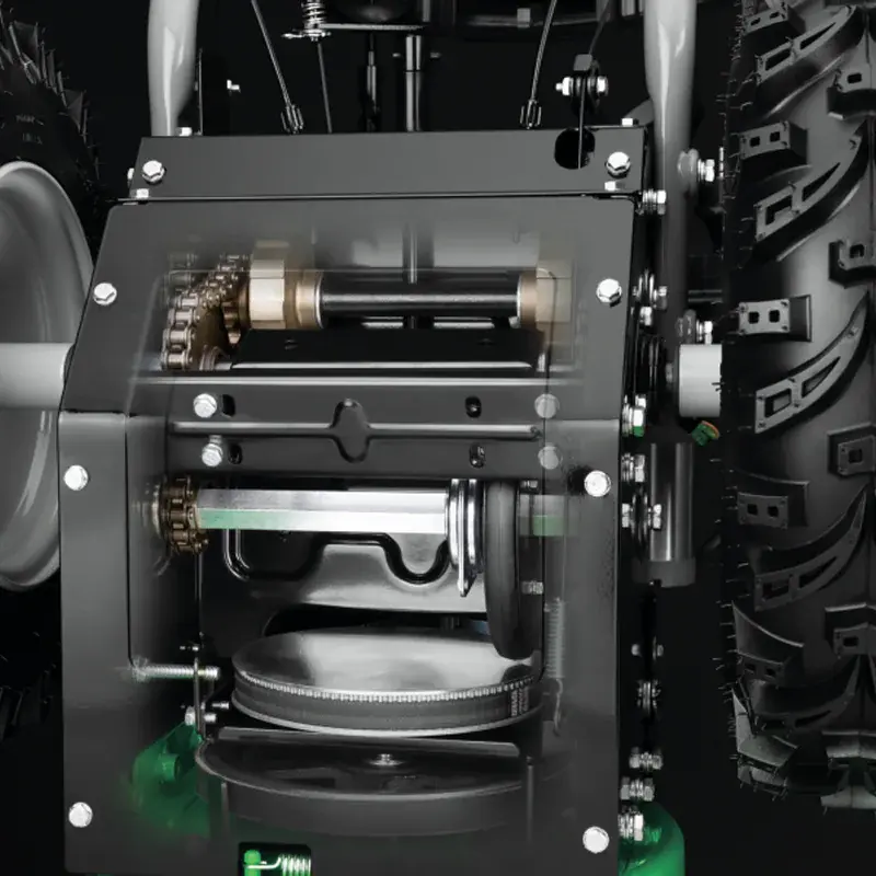Трансмиссия бензинового снегоуборщика с фрикционным диском позволяет переключать передачи для изменения скорости движения. Такой механизм отличается износоустойчивостью и практически никогда не ломается.