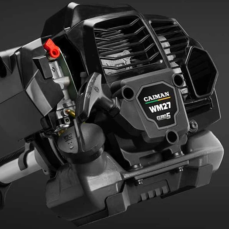 Двухтактный двигатель бензинового триммера Caiman мощностью 0,8 кВт развивает до 10000 об/мин, обеспечивая тщательное скашивание травы любой жесткости. Инструмент можно использовать для уборки территории. Сильный воздушный поток, возникающий при вращении насадки с леской, поможет разметать в стороны легкую листву.