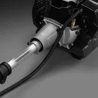 При вытягивании шнура стартера не требуется прикладывать особых усилий благодаря системе легкого запуска. Кнопка блокировки на рукоятке управления предотвращает случайное нажатие дроссельного регулятора. Чтобы заглушить двигатель, достаточно нажать переключатель, находящийся на правой рукоятке. Регулировка длины лески выполняется автоматически на ходу без остановки работы.