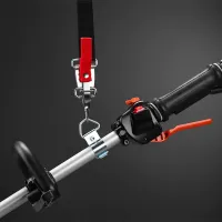 Все элементы управления, необходимые для контроля работы триммера, находятся на валу, под рукой оператора. Шнур стартера легко вытягивается благодаря системе легкого запуска двигателя.