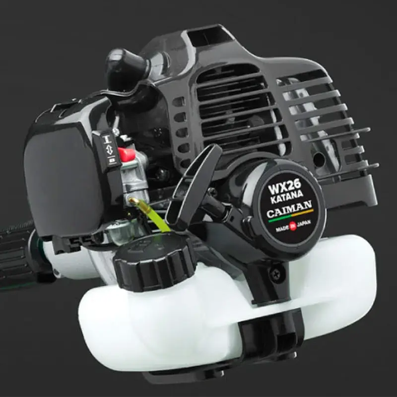 Бензокоса Caiman WX26 KATANA - профессиональный бензиновый триммер, рассчитанный на большие и ежедневные нагрузки. Небольшой вес сочетается с высоким уровнем производительности. Бензиновый триммер способен работать и с триммерной насадкой (леской), и с металлическим диском (оба режущих инструмента входят в комплект).