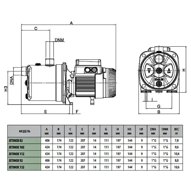 Насос центробежный DAB JETINOX 102 T имеет значительную всасывающую способность даже в том случае, когда вода наполнена пузырьками или небольшим количеством взвешенного песка.