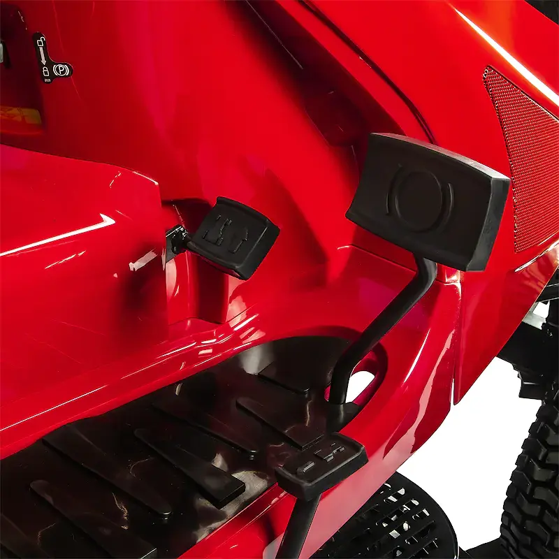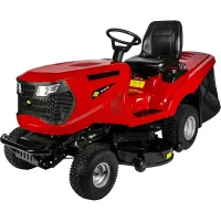 Колеса садового минитрактора DDE 106-300 с большими пневматическими шинами обеспечивают хорошее сцепление с поверхностью и плавный ход даже по неровному участку, при этом не повреждают растения. Райдер оснащен комфортным креслом и рулем с мягкой накладкой, за который удобно держаться даже при продолжительной работе. В передней части находятся фары. Подсветка позволяет косить траву рано утром или вечером, когда на улице темно.