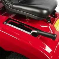 В садовом тракторе предусмотрена ручная 12-позиционная регулировка высоты стрижки. Это позволяет работать на участках, к которым предъявляются особые требования, например, на спортивных площадках, где высота трава не должна превышать 3-4 см, футбольных полях с высотой травы до 5 см или садово-парковых газонах высотой 6-8 см.