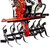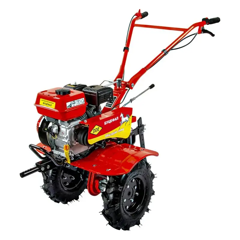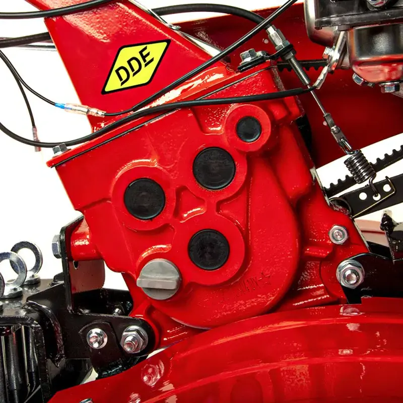 Бензиновый мотоблок позволяет выполнять разнообразные задачи за счет возможности установки дополнительного навесного оборудования. В комплект поставки входят только фрезы. С их помощью можно нарезать борозды, рыхлить и выравнивать почву, окучивать грядки и пропалывать междурядье. Ширина обработки определяется количеством установленных фрез. Агрегат подходит для участков площадью до 30 соток: дач, личных подсобных и фермерских хозяйств. Мотоблок DDE Буцефал поддерживает несколько передач. 2 скорости вперед и задний ход позволяют подобрать комфортный темп работы в соответствии с текущей задачей или размером участка.