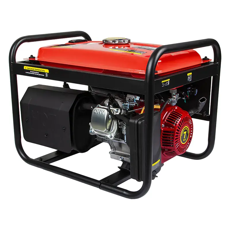 Бензиновый генератор пригодится на даче, в загородном доме, в кемпинге или гараже. Устройство обеспечивает работу бытовых приборов, электроинструментов, осветительной техники при отсутствии электроснабжения. Четырехтактный двигатель мощностью 7 л.с. вырабатывает достаточно электричества для работы нескольких потребителей мощностью до 3,3 кВт. Одного бака хватает на 8 ч работы при максимальной нагрузке. Для запуска используется надежный ручной стартер.