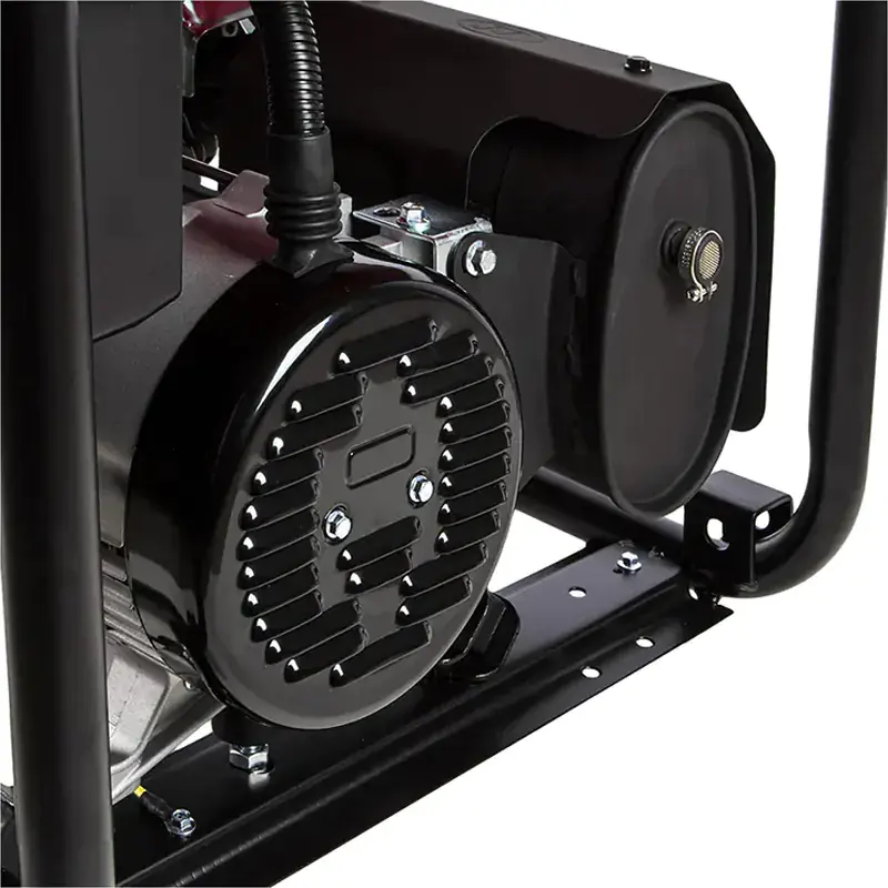 В бензогенераторе DDE G550P используется медная обмотка альтернатора. Этот материал долговечнее и проводит ток лучше алюминия, не так сильно нагревается. Металлическая труба, огибающая весь корпус, образует прочную раму, защищает технику от механических повреждений при перевозке или во время работы на строительной площадке.