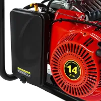 Силовая рама сечением 28 мм и толщиной 2.5 мм образует две ручки для удобства перемещения устройства с одного места на другое. Система защиты останавливает двигатель при низком уровне масла.