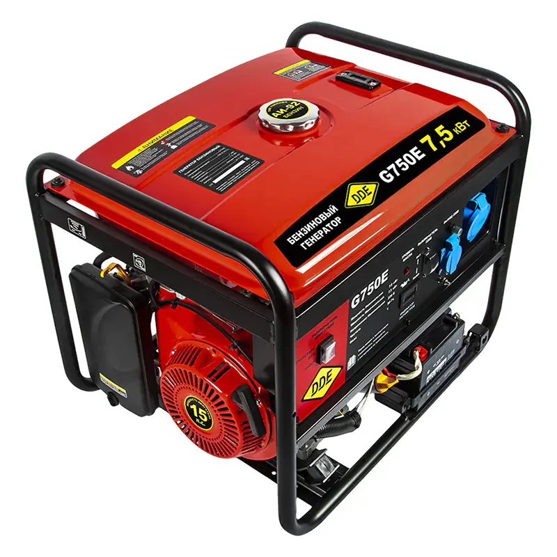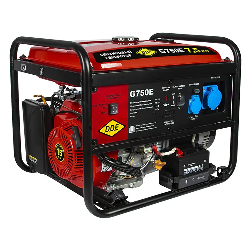 Бензиновый генератор DDE G750E обладает номинальной мощностью 7 кВт, подходит для питания двух потребителей одновременно и станет незаменимым помощником как в домашней мастерской или гараже, так и на строительной площадке. Для простого и быстрого запуска предусмотрен электростартер. Аккумулятор к нему поставляется в комплекте.