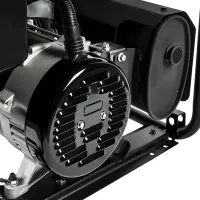 На панели управления нет выступающих частей. Силовая розетка утоплена в корпус. Это снижает случайный риск повреждения во время транспортировки бензиновой электростанции. Топливный бак оснащен большим количеством ребер жесткости, что предотвращает его прогибание. Ручка стартера изготовлена из высокопрочного пластика, поэтому не расколется при резком отпускании тросика. В качестве защиты всего генератора используется металлическая труба, которая образовывает раму.