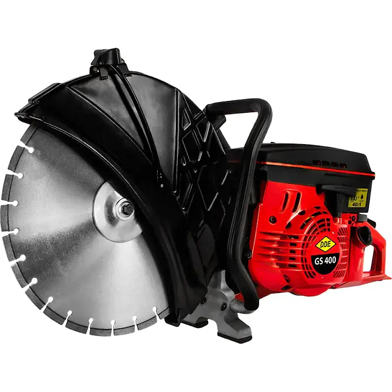 Бензиновый ручной резчик DDE GS 400-16 предназначен для резки различных материалов: асфальта, бетона, камня, кирпича, а также металла. Для работы подойдет диск диаметром 400 мм, который приобретается отдельно.