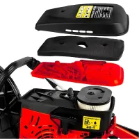 Режущий диск огражден защитным кожухом. Вы всегда можете настроить его положение самостоятельно при помощи отдельной ручки. Кожух нужно устанавливать таким образом, чтобы его задняя часть не касалась материала, который вы собираетесь резать. За счет двух держателей бензорез DDE GS 400-16 удерживается обеими руками, что позволяет избежать сильной отдачи. При этом передняя рукоятка оснащена нескользящим покрытием для крепкого хвата.