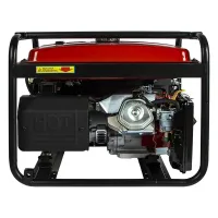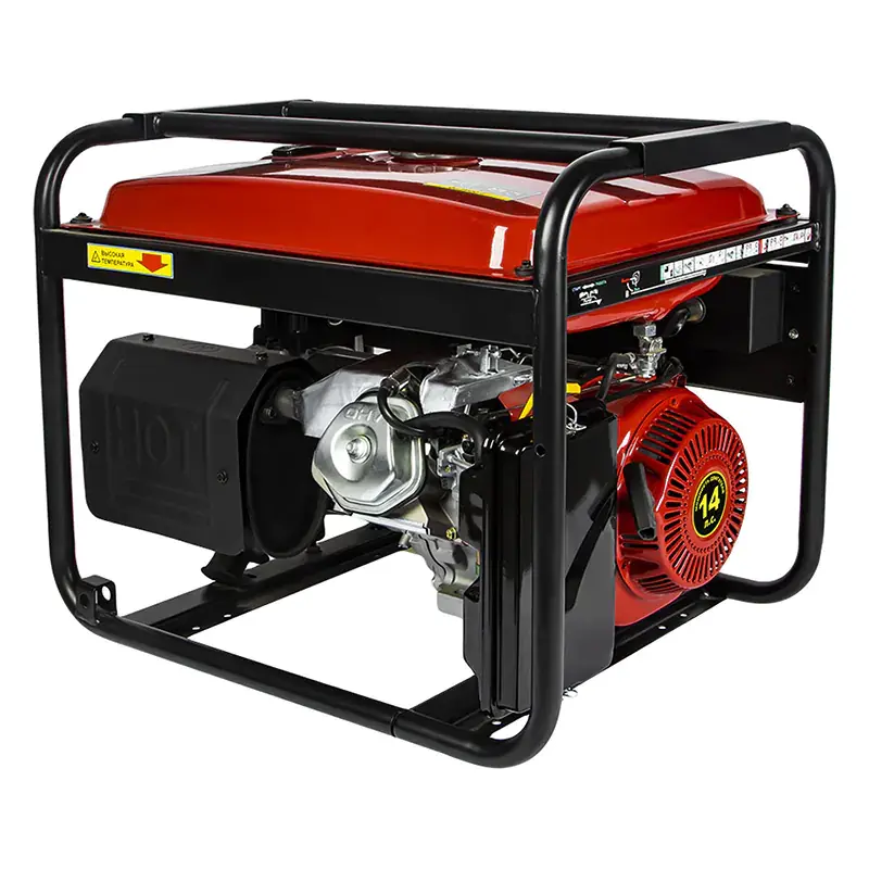 Для питания техники предусмотрены два выхода 220 В. Каждая розетка оснащена защитной крышкой, которая не пропускает внутрь грязи. За счет этого вы можете размещать генератор на открытом пространстве или в запыленном помещении. Рядом с розетками расположен амперметр. С помощью него удобно отслеживать текущую силу тока. Светодиодный индикатор уровня масла оповестит о необходимости заправки бачка. Если аккумулятор заряжен, то мотор заводится одним поворотом ключа в замке зажигания.