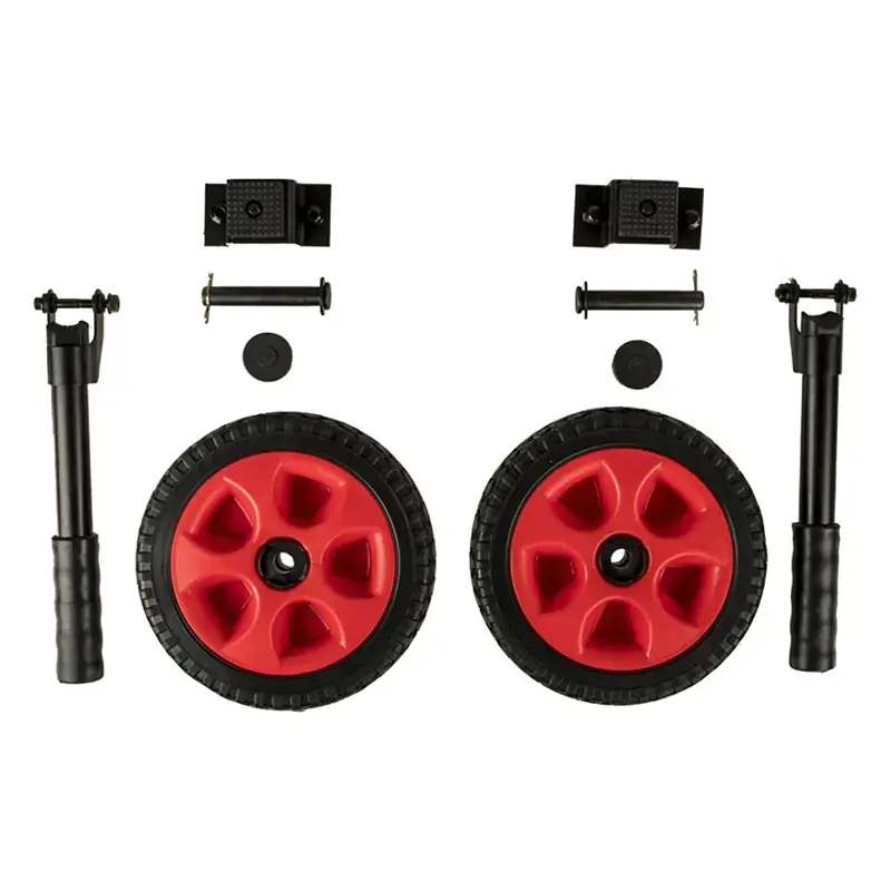 Бензиновый сварочный генератор весит 98 кг. Для простого перемещения по рабочему помещению необходим транспортировочный комплект, который приобретается отдельно. Он включает в себя два колеса и складные ручки с накладками.