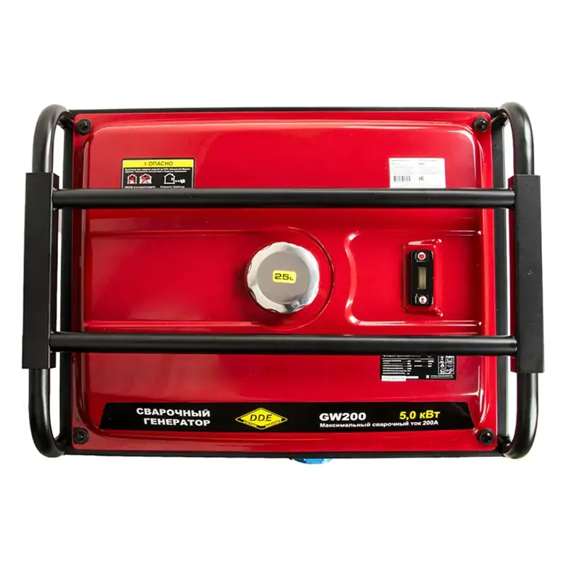 Открытая конструкция генератора DDE GW200 упрощает техническое обслуживание, а также проведение ремонтных работ. Для защиты от механических повреждений предусмотрена прочная металлическая рама. Её верхняя часть используется в качестве ручек, а нижняя служит устойчивым основанием.