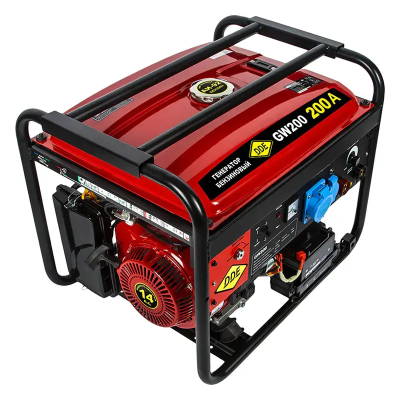 Сварочный генератор DDE GW200 совмещает в себе две функции: позволяет питать бытовую технику или электроинструмент, а также сваривать заготовки. Ток настраивается в диапазоне от 50 до 210 А. Есть электростартер для быстрого запуска двигателя.