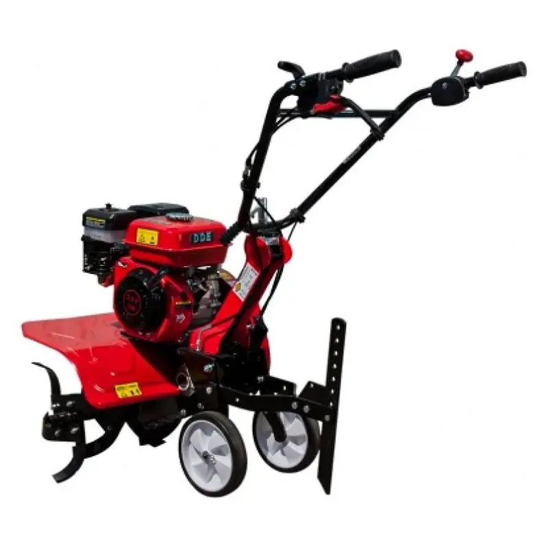 Культиватор DDE Крот-3 удобен и безопасен в использовании. Широкое крыло защищает вас во время работы от вылетающих из-под фрез комьев земли, травы, камней. Большие колеса облегчают перевозку тяжелой машины по участку. Широкая горловина упрощает заливку топлива в бак. Для контроля за уровнем масла есть специальный датчик. При необходимости на агрегат можно установить дополнительное навесное оборудование.