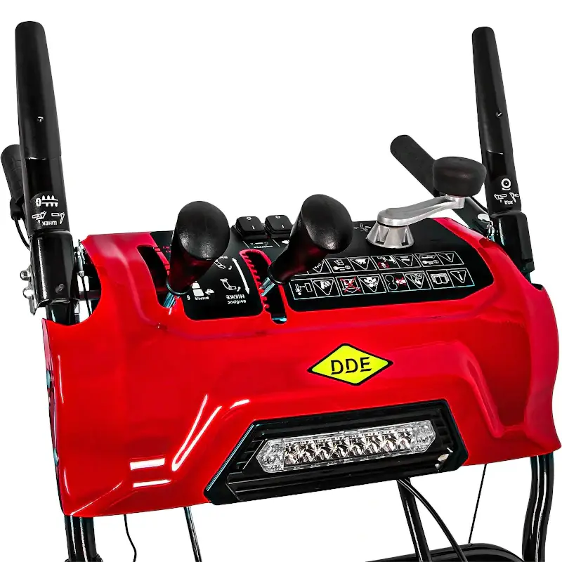 Снегоуборщик DDE ST7066LE оснащен большим резиновыми колесами и уверенно передвигается по льду и снегу. Для комфортной работы на морозе предусмотрен подогрев рукояток. Выбрать оптимальный режим очистки можно благодаря шести передним передачам. Две задние скорости позволяют удобно парковать снегоуборщик или вытаскивать его из сугроба.