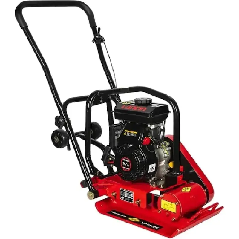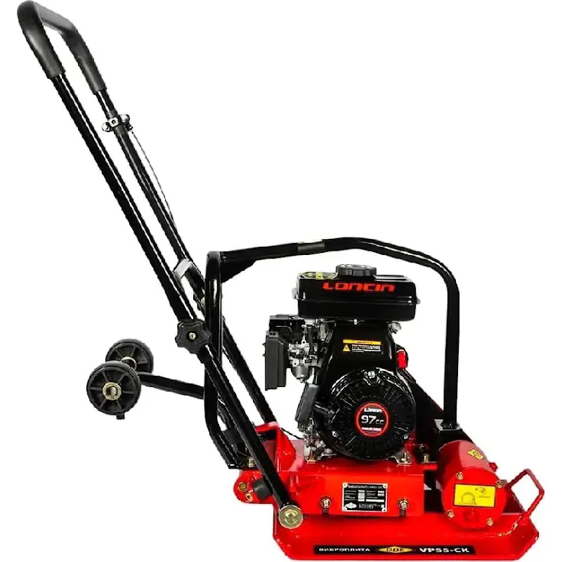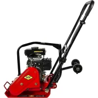 Бензиновая виброплита позволит быстро утрамбовать сыпучий материал: гравий, щебень, песок, а также различные почвенные смеси. Аппарат оснащен плитой основания размером 495 х 320 мм. Это оптимальный размер для обработки участка площадью 250 м2 за один час. За счет компактной конструкции трамбовкой удобно обрабатывать узкие дорожки, траншеи, места вдоль стен, а также участки возле фундаментов. Аппарат поможет отремонтировать определенный участок асфальтового покрытия, благоустроить придомовую территорию, тротуары, садовые дорожки, а также создать фундамент. В конструкции виброплиты предусмотрены откидные колеса. Они позволяют удобно перемещать данную модель до места работы. Вам не придется снимать колеса после транспортировки, т.к. их можно компактно сложить.