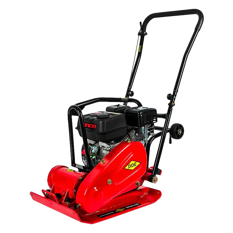 Виброплита DDE VP80-СK оборудована надежным бензиновым двигателем Loncin G200F, мощность которого составляет 6.5 л.с. Агрегат способен уплотнять обрабатываемую поверхность на глубину до 30 см. Размер плиты 590х420 мм дает возможность эффективно работать даже в узких местах. Мощные крепежные элементы исключают расшатывание конструкции с течением времени. Виброплита пригодится при выполнении ландшафтных или дорожных работ - для уплотнения грунта и других сыпучих материалов - гравия, щебня, песка, для укладки тротуарной плитки.