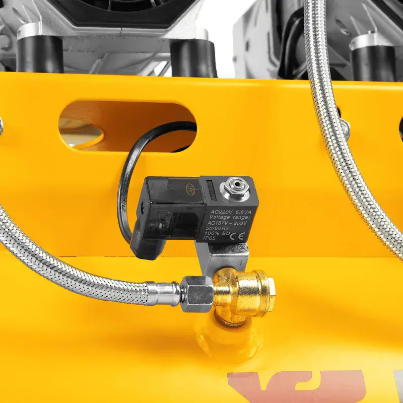 Безмасляный малошумный компрессор Denzel DLS 1800/100 58028 мощностью 1800 (3 х 600) Вт, объемом ресивера 100 л и производительностью 345 л/мин предназначен для обеспечения пневмоинструмента сжатым воздухом, подаваемым под давлением до 8 бар. Позволяет подключить пневматический заклепочник, дрель, шлифмашину и т. д. Оптимален для работы с краскопультом и для продувки электронных компонентов, т. к. в сжатом воздухе отсутствуют частицы масла. Компрессор пригодится в мастерской, гараже, на строительной площадке.