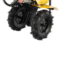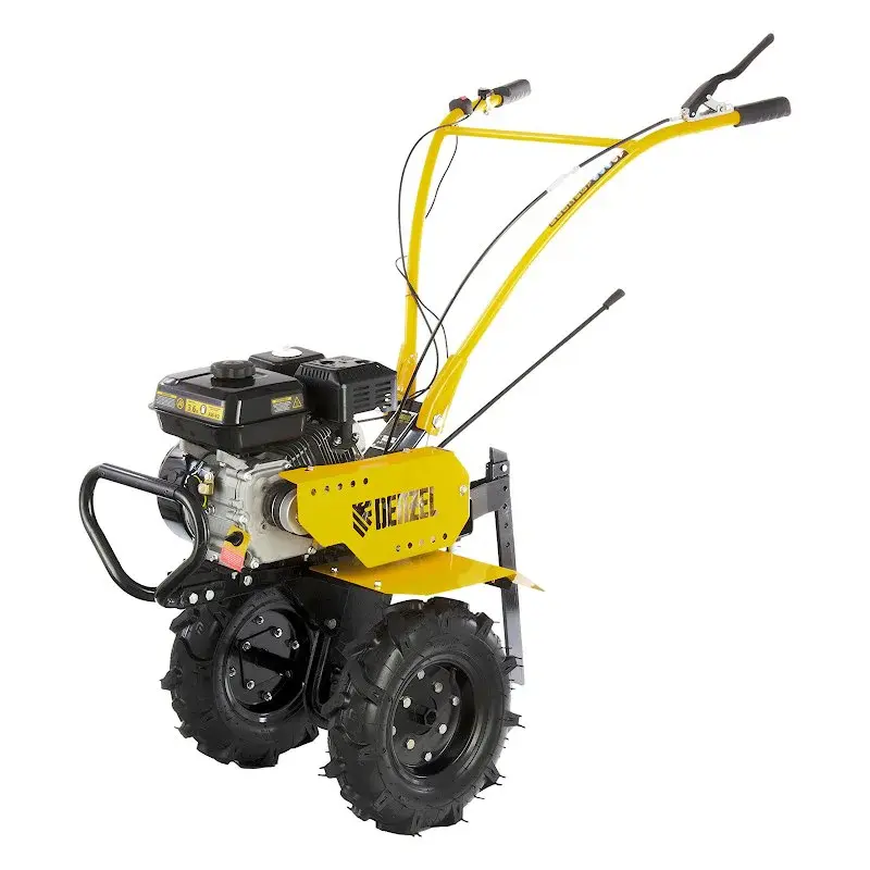 Бензиновый мотоблок Denzel DPT-270 оснащен двигателем мощностью 7 л.с. за счет чего подходит для работ на большом участке площадью 1500 м2. Шкив отбора мощности и универсальное сцепление позволяют использовать практически любое навесное оборудование: для скашивания травы, уборки мусора с территории, сборки или посадки урожая и т.д.