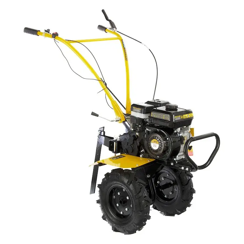 Для простого перемещения по участку предусмотрены пневматические колеса. Агрессивный рисунок позволит проходить по кочкам, песку, а также снегу.