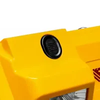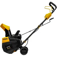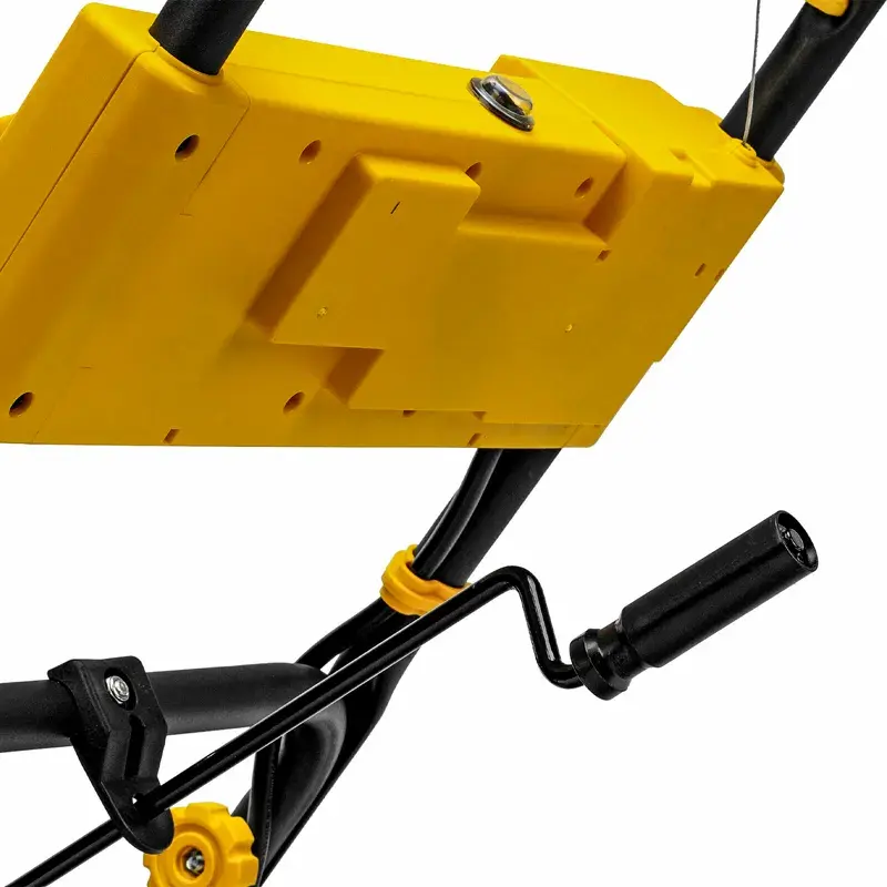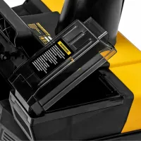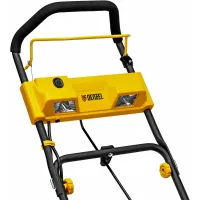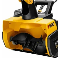 Аккумуляторный снегоуборщик DENZEL прост в эксплуатации. Все, что нужно для начала работы — установить две аккумуляторные батареи, нажать кнопку и катить машину в нужную сторону. Для включения шнека достаточно прижать рычаг привода к рукоятке. Изменять направление выброса можно на ходу, не останавливая движение. Дальность откидывания снега регулируется путем наклона козырька на желобе. Его положение фиксируется при помощи барашковых винтов, без использования специальных инструментов.
