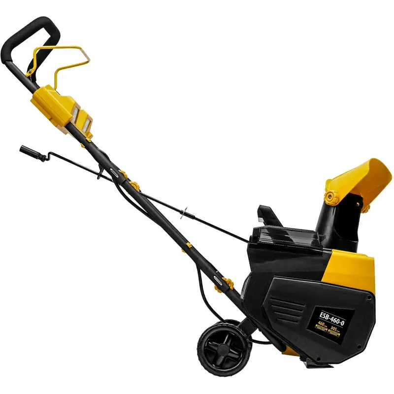 Аккумуляторная снегоуборочная машина DENZEL ESB-460-0 помогает значительно экономить время и силы во время расчистки территории после снегопада. Снегоуборщиком легко и приятно пользоваться благодаря его небольшому весу, простому управлению, отсутствию выхлопных газов, проводов и сильного шума. Ковш с шириной захвата 46 см оставляет после себя гладкие расчищенные дорожки. Снег отбрасывается в сторону. Направление и дальность выброса можно регулировать. Устройство работает от двух 18-вольтовых Li-Ion аккумуляторов емкостью 4 Ач каждый.