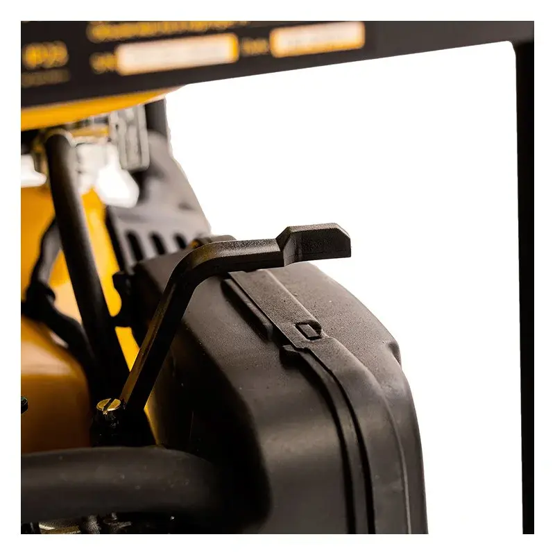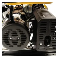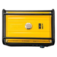 Встроенный датчик позволяет отслеживать уровень масла в бачке бензиновой электростанции. Если смазки будет недостаточно, то система защиты остановит работу генератора или не позволит вам запустить двигатель. Включение будет возможно только после заправки масляного бачка. Для защиты от механических повреждений используется стальная рама. Она представляет собой трубу диаметром 32 мм с толщиной стенок 1,5 мм, которая огибает весь корпус. Верхняя часть образует рукоятки для переноски, а нижняя служит устойчивой опорой. Для большего удобства вы можете установить на раму транспортировочный комплект, который докупается отдельно. Он состоит из колес и длинной ручки.