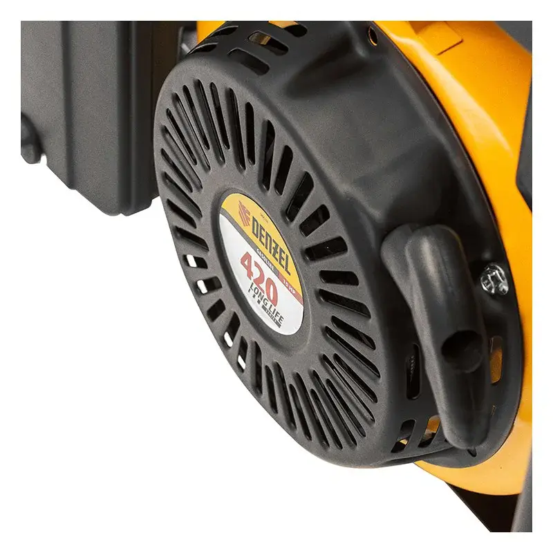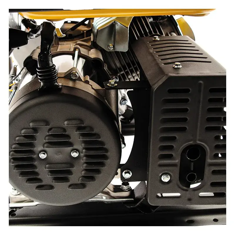 В бензогенераторе Denzel GE-7900 установлен двигатель Long Life Series. Для длительного срока службы он обладает чугунной гильзой, а также стальными распредвалом, толкателями клапанов и коленвалом. Обмотка альтернатора изготовлена из меди. Такой материал, в отличие от алюминия, меньше нагревается, хорошо проводит ток и рассчитан на длительный срок службы. Вал хорошо сбалансирован для снижения уровня вибрации и увеличения ресурса работы подшипников коленвала.