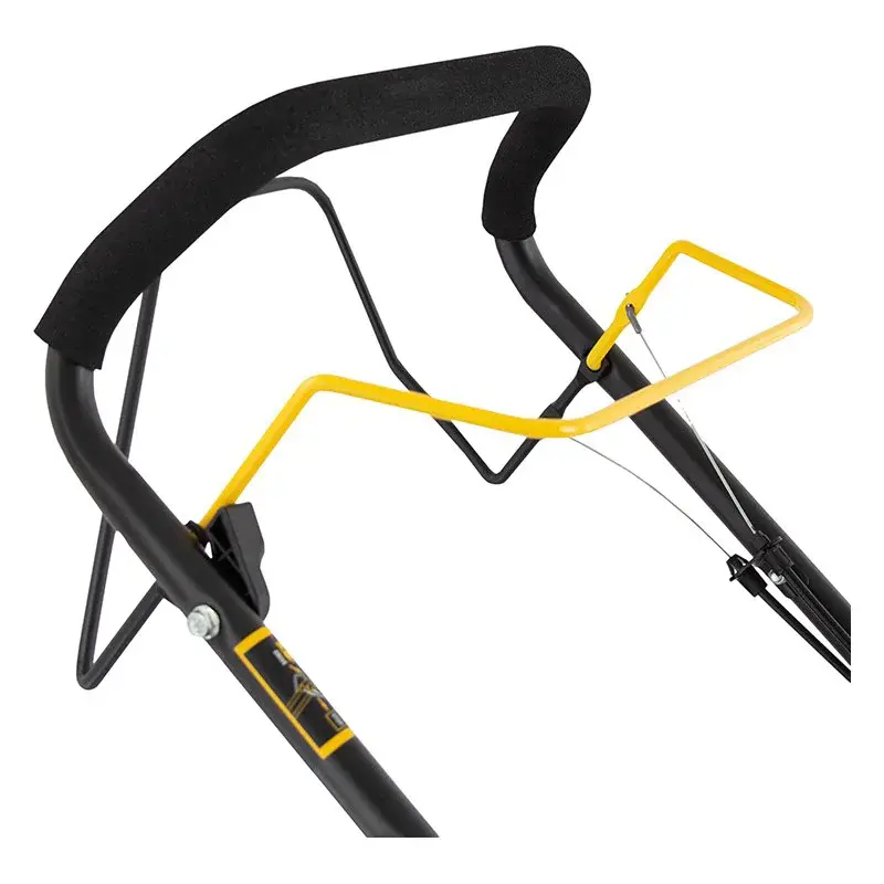 Частота вращения шпинделя составляет 3000 об/мин. Это дает возможность скашивать даже плотную и густую растительность. Есть у бензомоторной газонокосилки Denzel GLD-460SP и система безопасности: если случайно отпустить рычаг управления, вращение лезвия и работа двигателя сразу прекращаются.