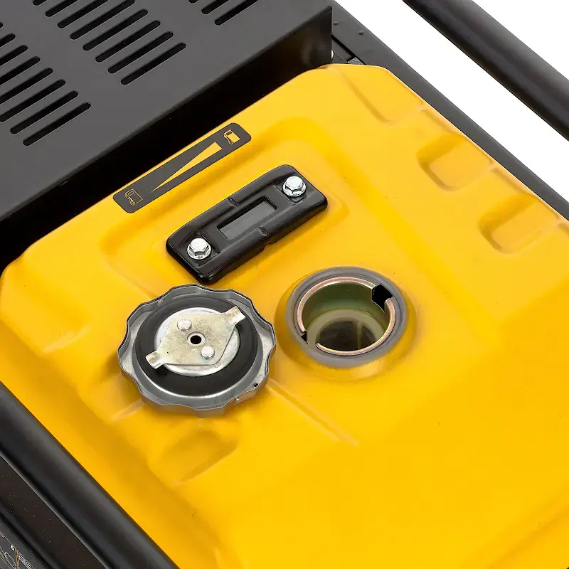 Генератор открытого типа обеспечивает быстрый доступ к основным внутренним узлам. В качестве защиты выступает рама из стальной трубы. Она не только оберегает конструкцию от механических повреждений, но и служит одновременно устойчивой опорой, а также транспортировочными ручками.